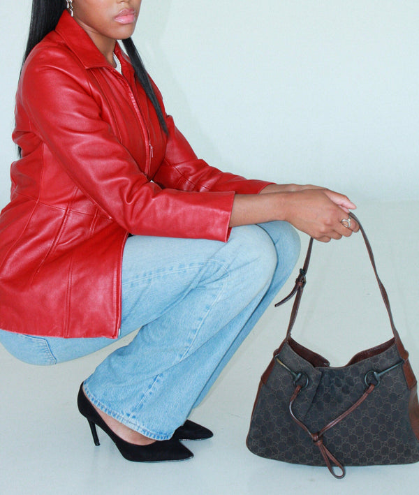 Step into timeless style with this bold red leather jacket, a statement piece that transforms any look with edge and sophistication. Paired with the rare Gucci x Tom Ford vintage bag.
